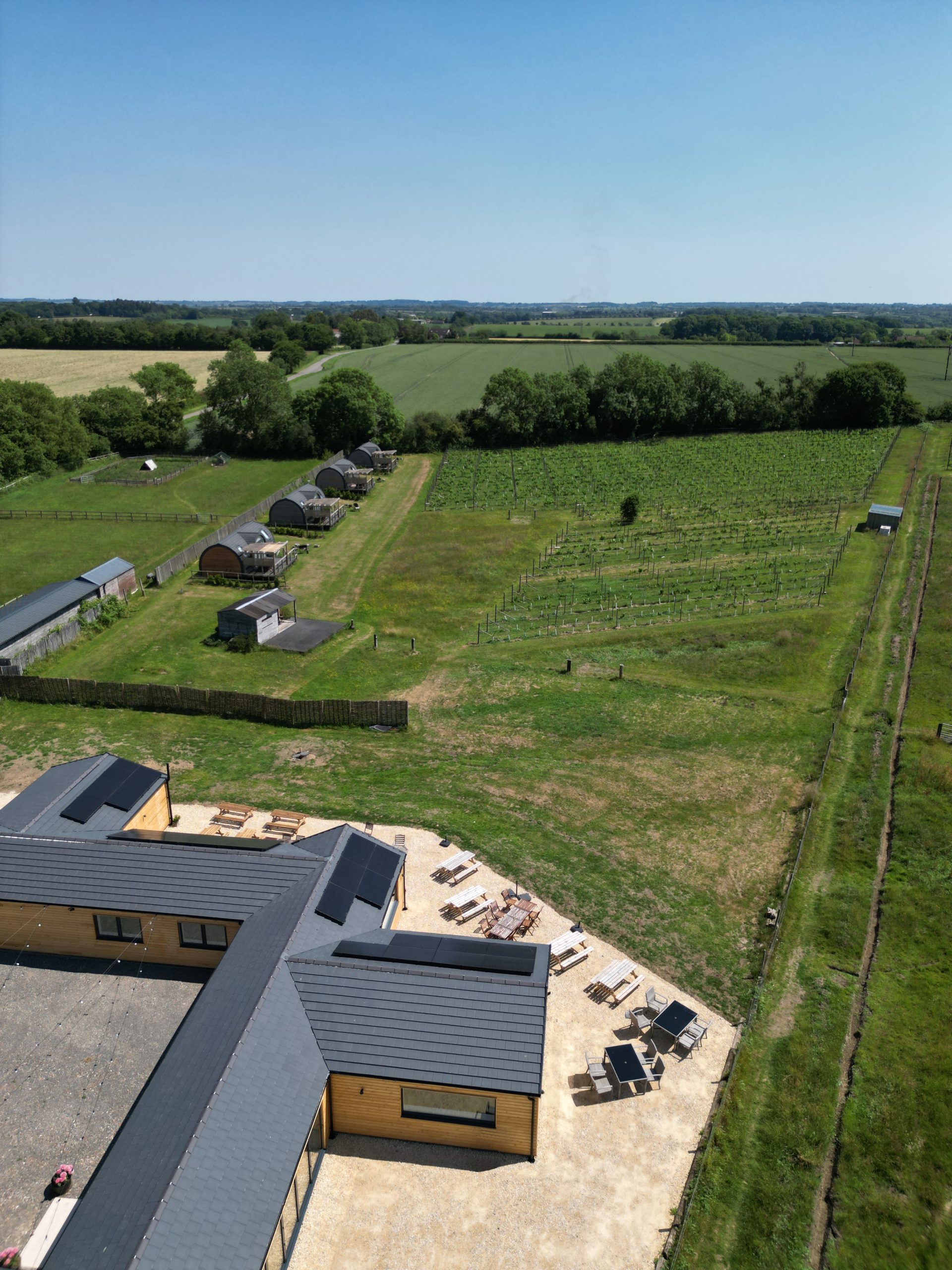 Wolds Wine Estate is an artisanal wine estate in south Nottinghamshire with luxury vineyard glamping. With farming and viticulture being part of the founders’ heritage, Wolds Wine Estate seeks to create an authentic English countryside experience with a vineyard and traditional orchard as focal points. First vintage wines and Estate-made cider are now available. Four luxury glamping pods with vineyard views cater for couples, families and groups. A cafe restaurant is expected to open in 2025 once final planning has been approved.